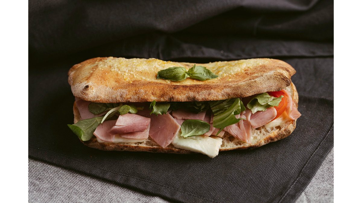 blat de pizza napoletan, mozzarella fior di latte, prosciutto cotto, provola affumicata, porumb, ulei de măsline extra virgin, busuioc proaspăt - 510g