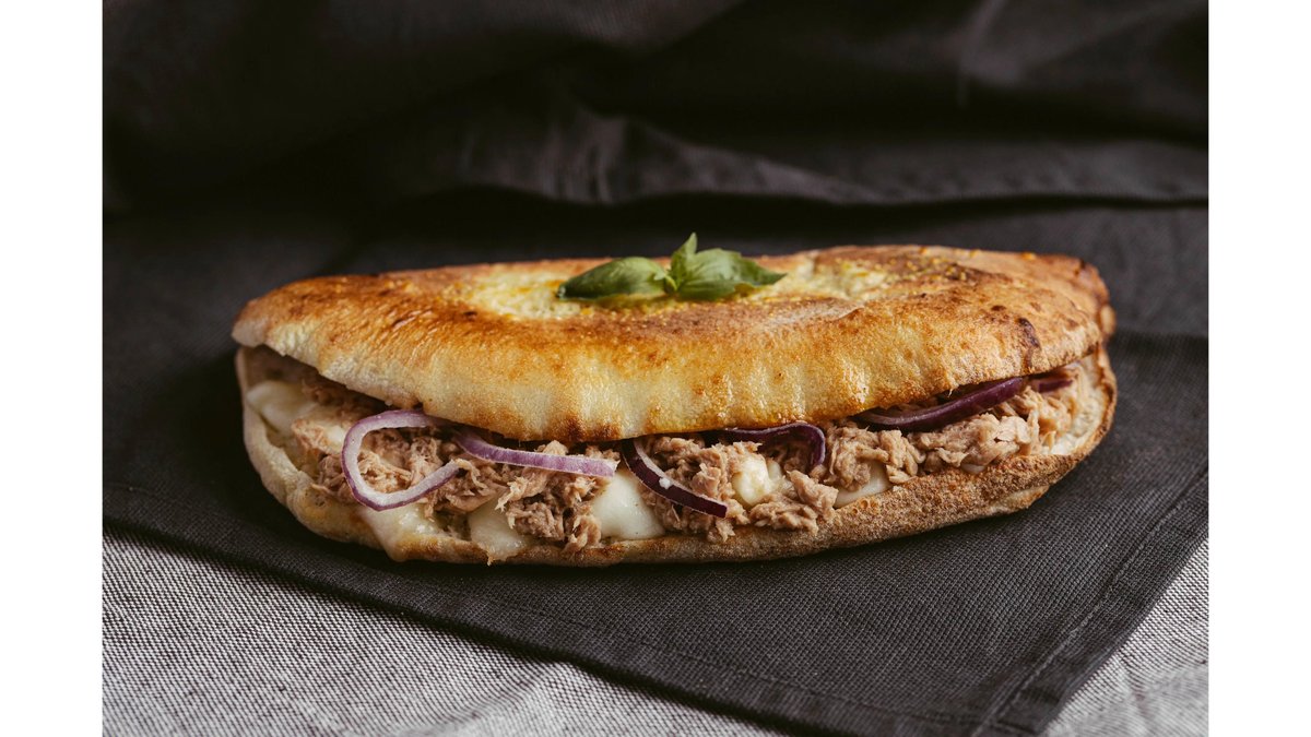 Blat de pizza napoletan , mozzarella fior di latte, ton în ulei vegetal, sos de roșii San Marzano D.O.P., măsline Kalamata fără sâmburi, ceapă roșie, capere în oțet , rucola, ulei de măsline extra virgin, busuioc proaspăt - 520g