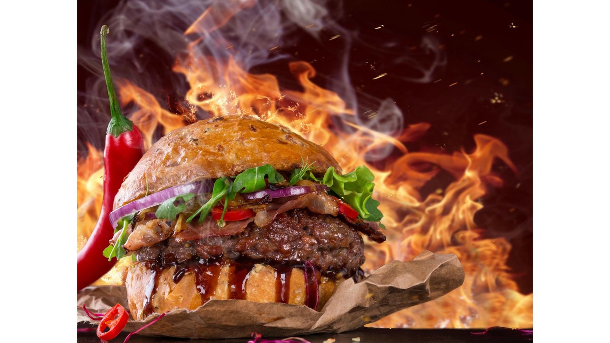 Chiflă, sos, salată, carne de vită, cheddar, ardei iute, sos sriracha, ceapă, roșie, castraveți, ketchup, cartofi pai 475g