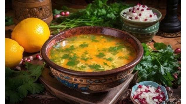 Carne de pui, legume, verdeață, taiței, borș 400g
