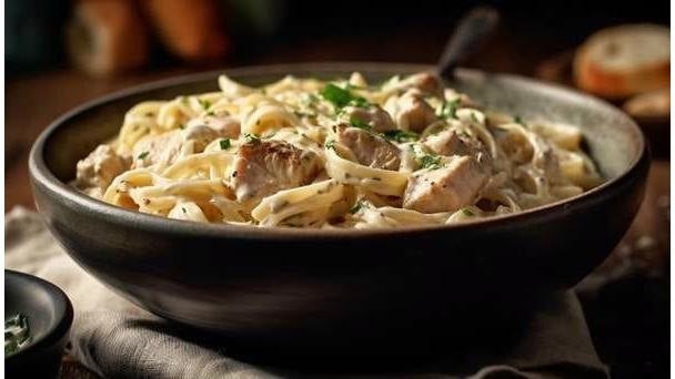 Penne, bacon, piept de pui, smântână, mozzarella 400g