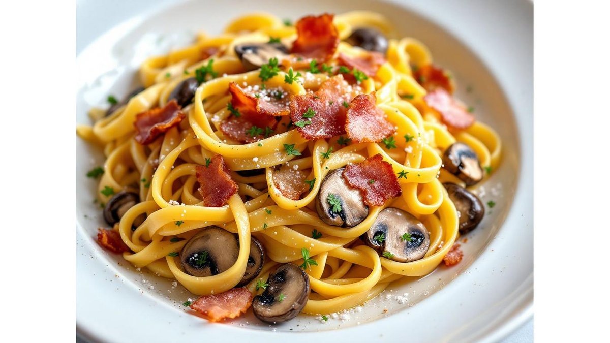 Tagliatelle, hribi, bacon, verdeață, sare, piper 400g