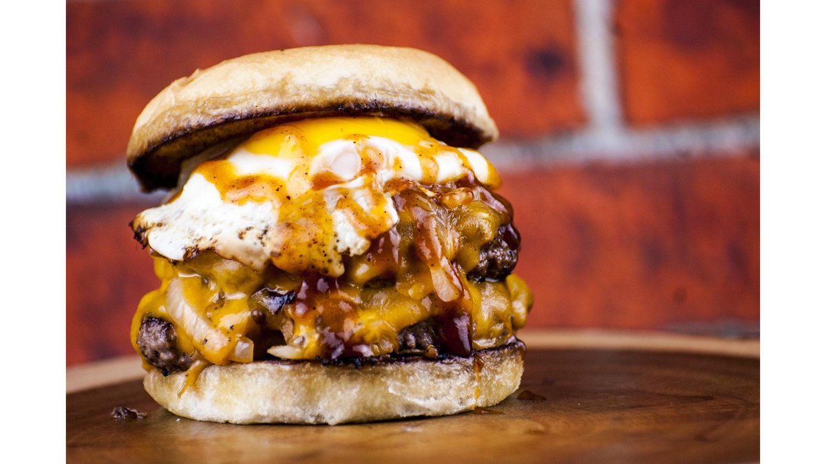 Chiflă, sos, salată, carne de vită x2, cheddar x2, ou, bacon, ceapă, ketchup, cartofi pai 540g