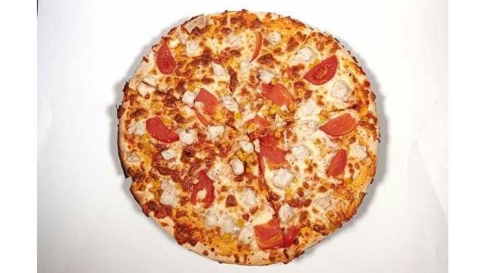 Sos roșii, mozzarella, piept de pui, porumb, oregano, roșii