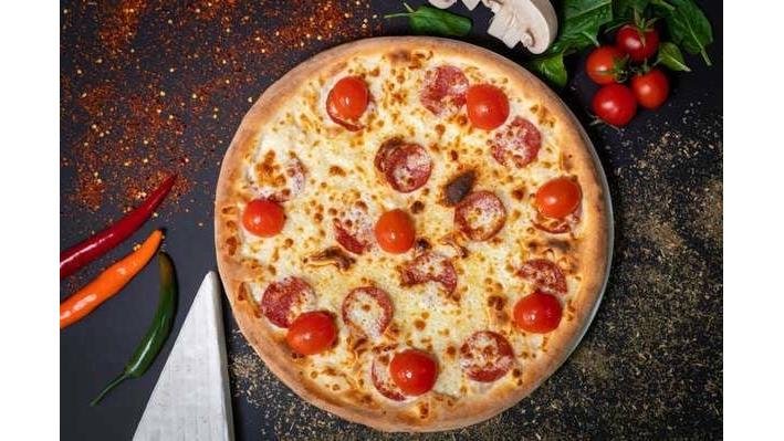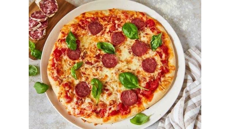 Sos roșii, mozzarella, salam, ardei iute, oregano