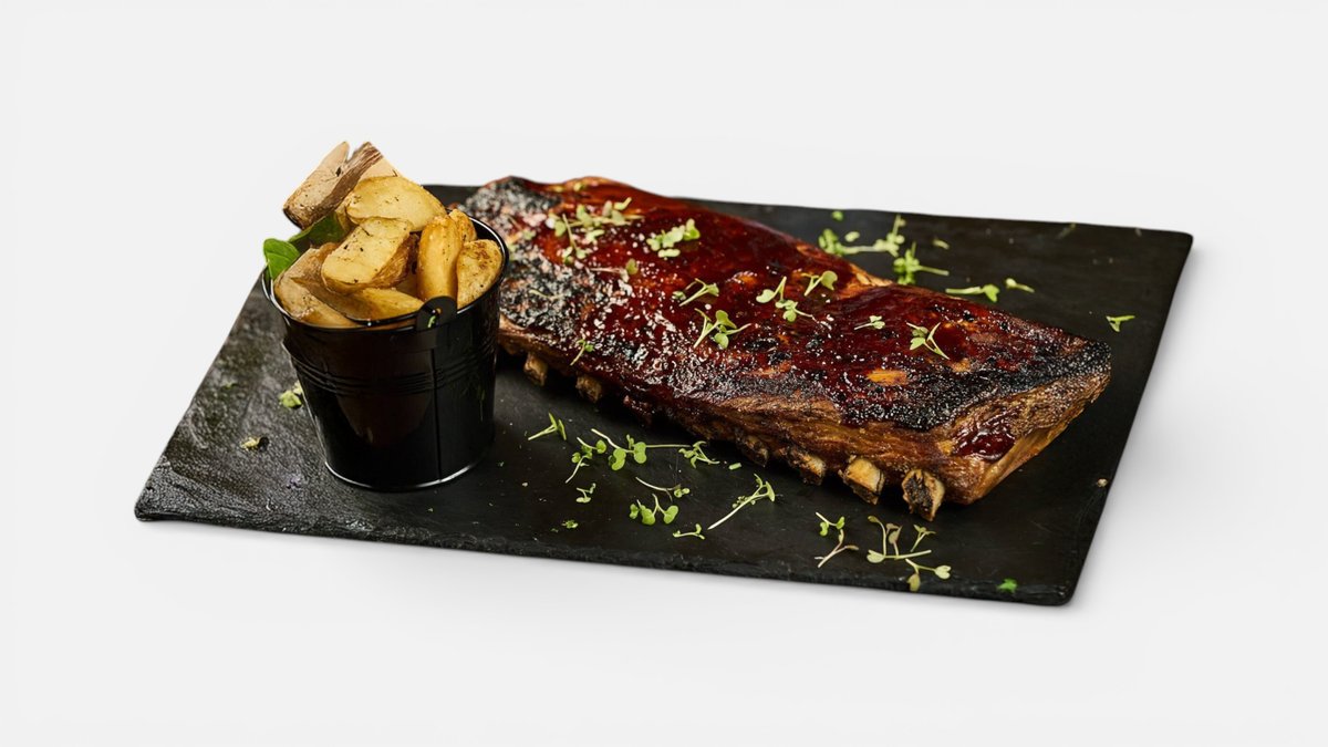 coasre de porc afumate/sos bbq/cartofi steakhouse/salata coleslaw