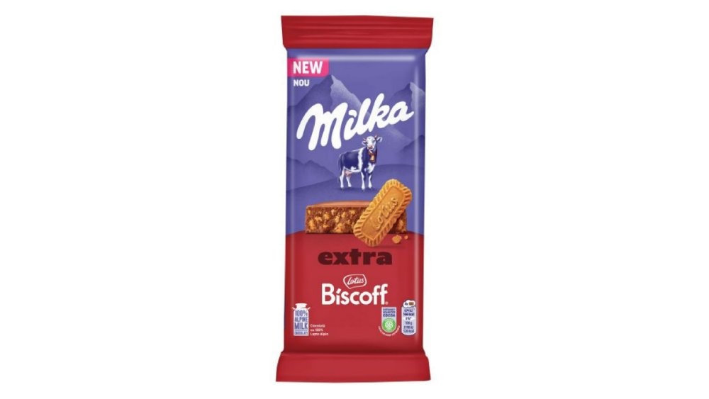 Ciocolata cu bucatele de biscuiti caramelizati si lapte alpin Milka, 190 g