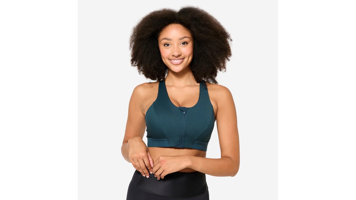 Bustieră sport reiată cu fermoar susținere medie Turcoaz Damă