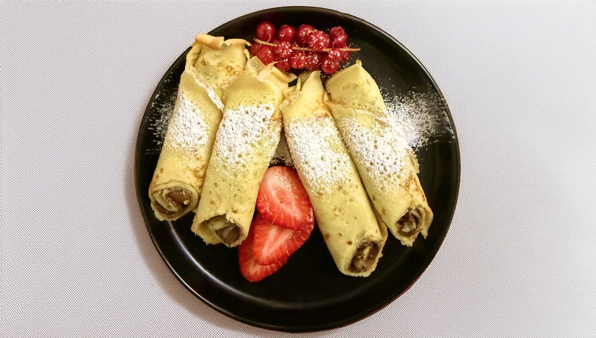2 clatite umplute cu crema de ciocolata Finetti si topping de ciocolata