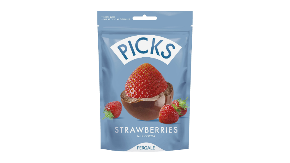 Capsuni uscate prin congelare in glazura de cacao cu lapte Pergale Picks, 90 g