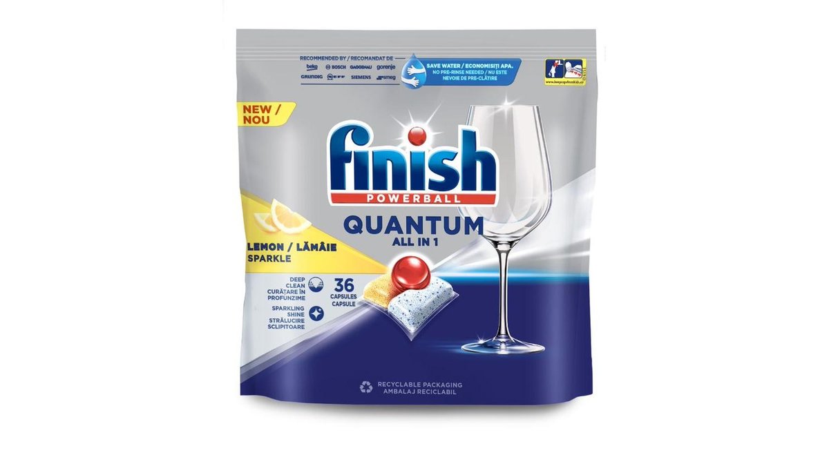 Detergent capsule pentru masina de spalat vase Finish Quantum All in 1 Lemon, 36 spalari