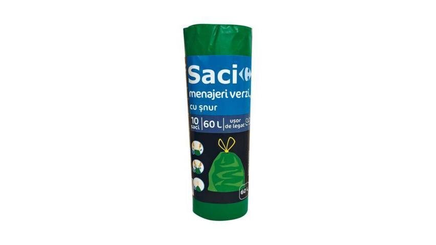 Saci Carrefour Verde Cu Snur 60L 10Buc