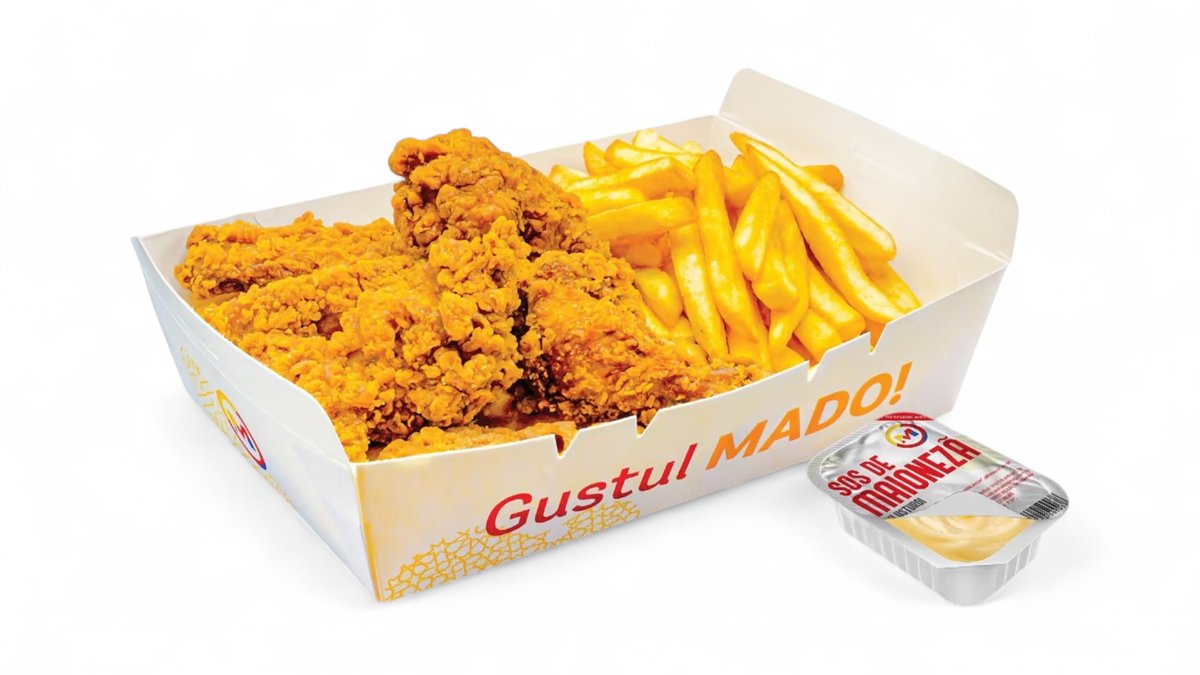 ARIPIOARE MADO – Aripioare panetate, cartofi prăjiți, sos de maioneza cu usturoi - 410g