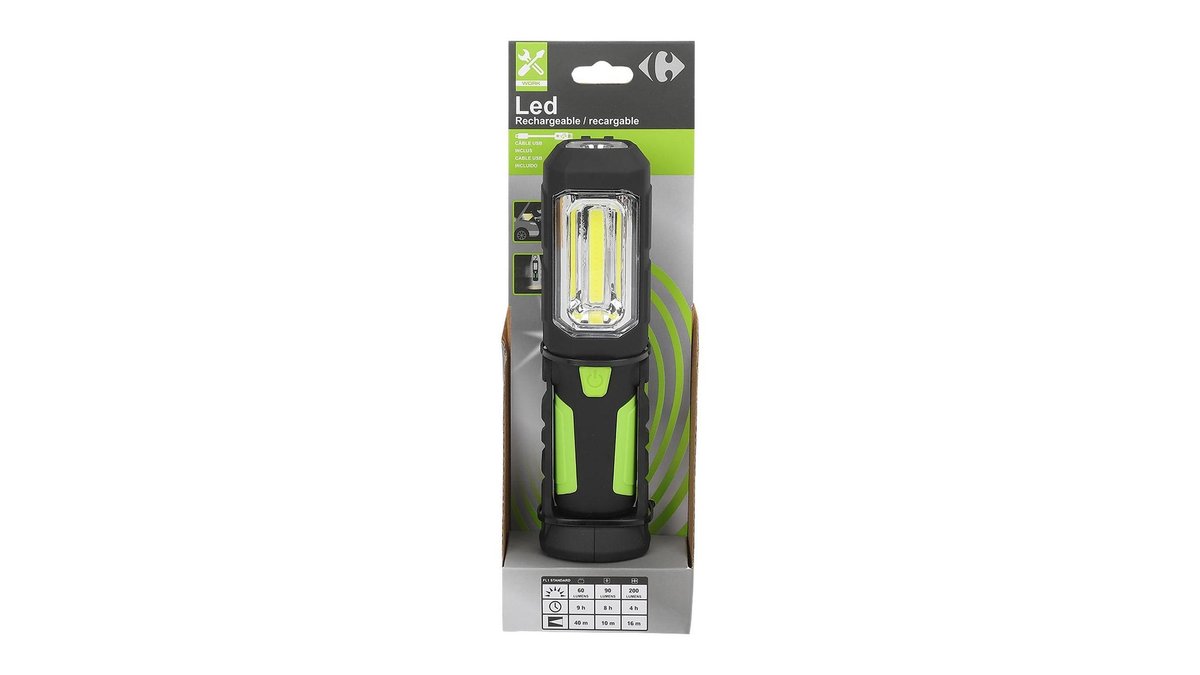 Lanterna LED reincarcabila Carrefour, Negru/Verde