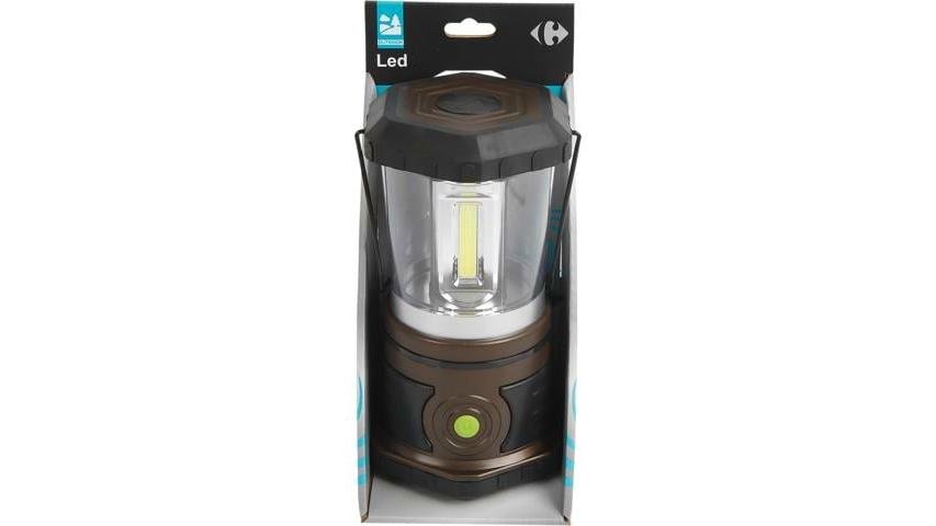 Lampa de camping portabila cu bec LED Carrefour, 3 baterii AA, 280 lumeni, Gri