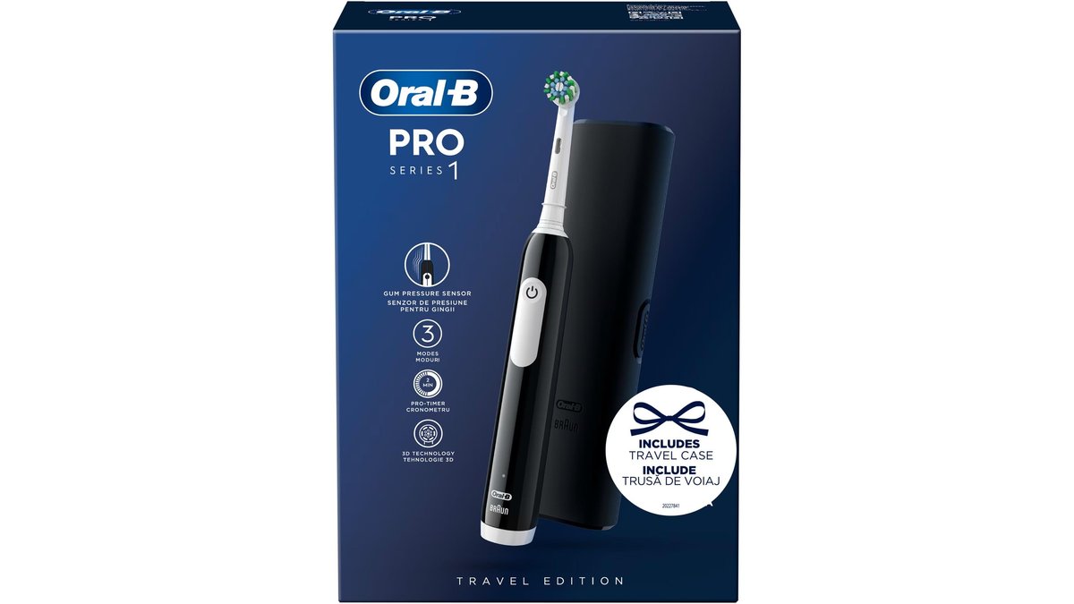 Periuta de dinti electrica Oral-B Pro 1, Curatare 3D, 3 programe, 1 capat de periaj, trusa de calatorie, Negru