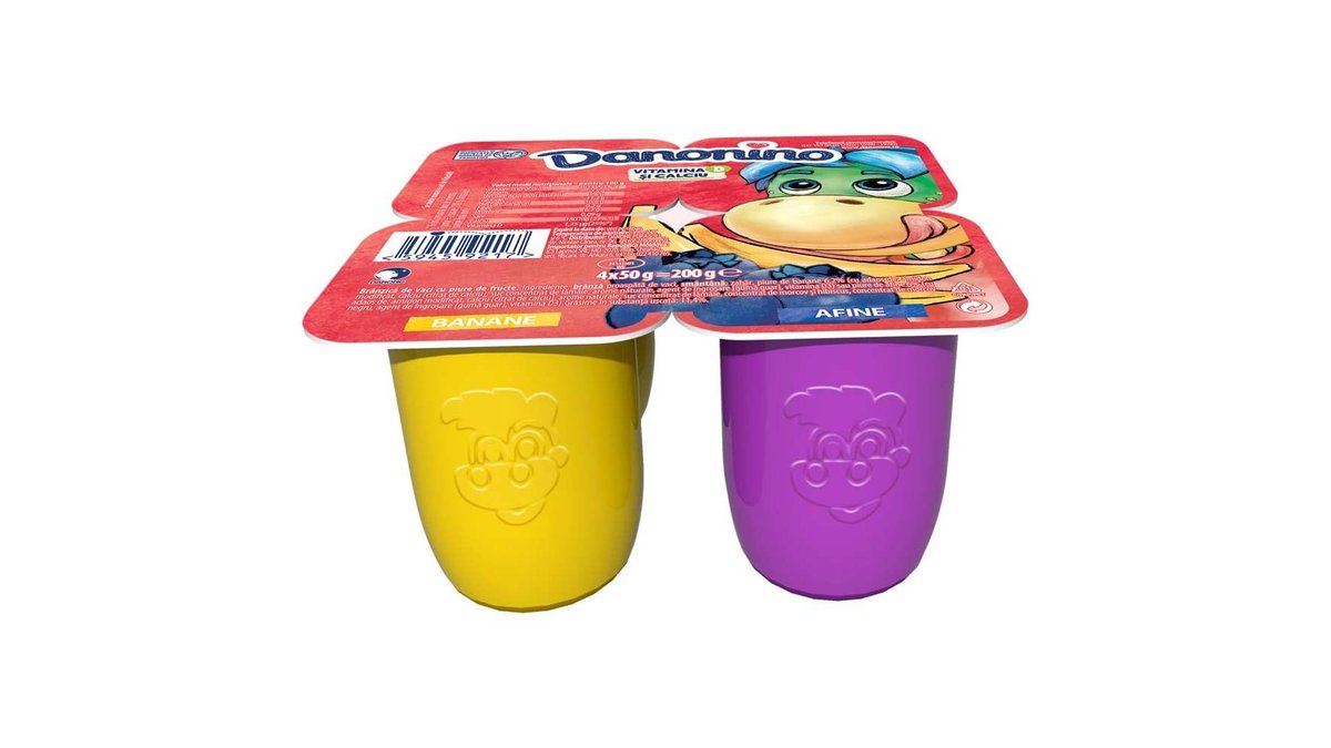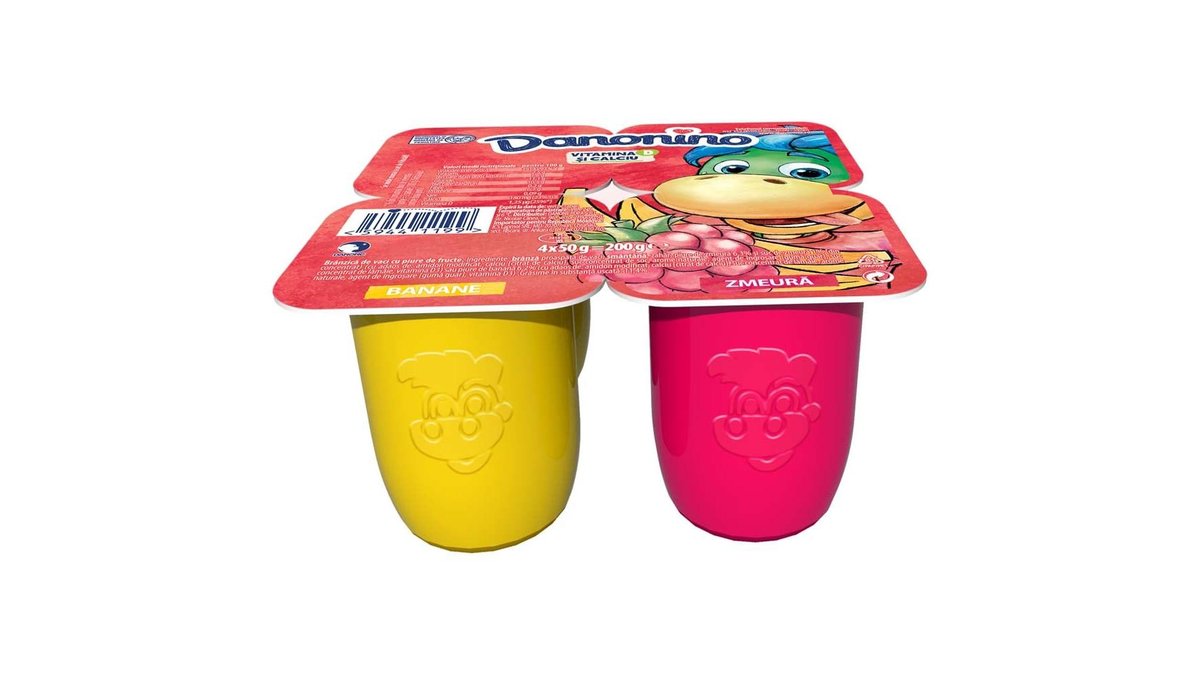 Danonino Branzica de vaci pentru copii cu piure de Banana si Zmeura 4x50g
