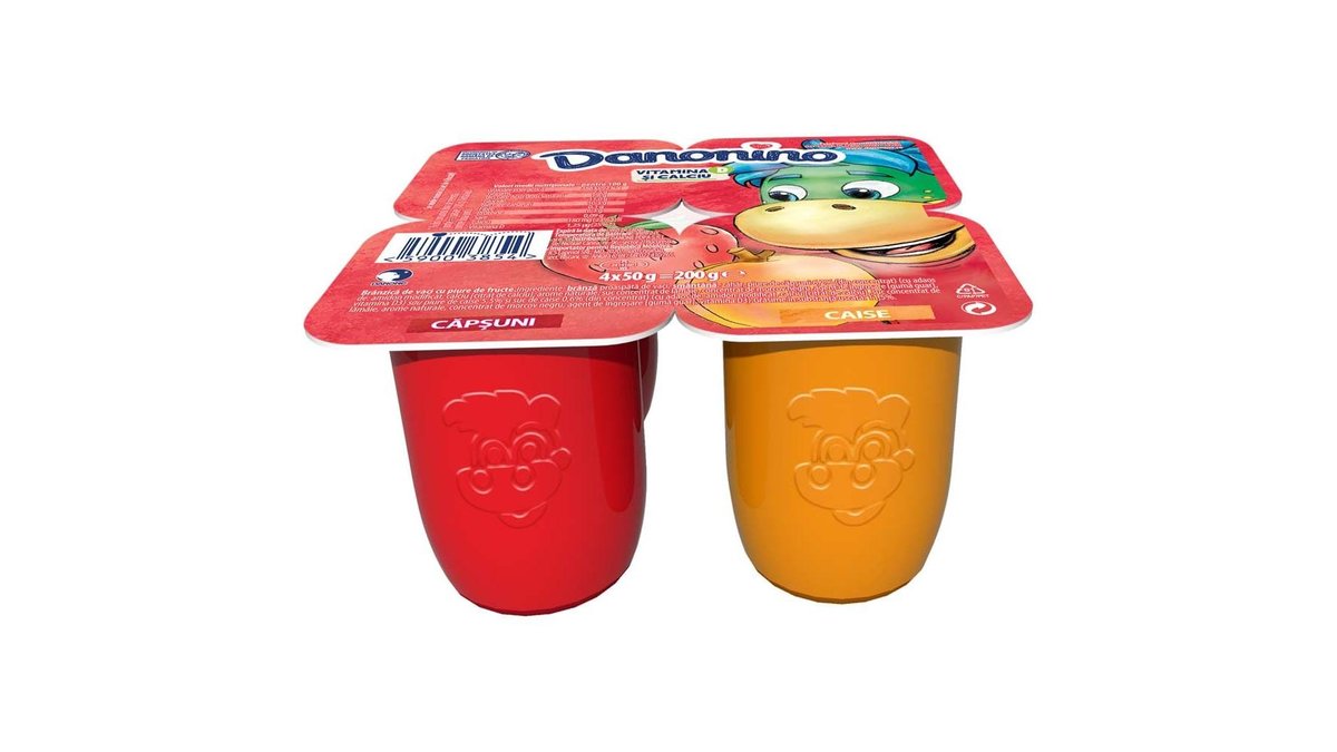 Danonino Branzica de vaci pentru copii cu piure de Capsuni si Caise 4x50g