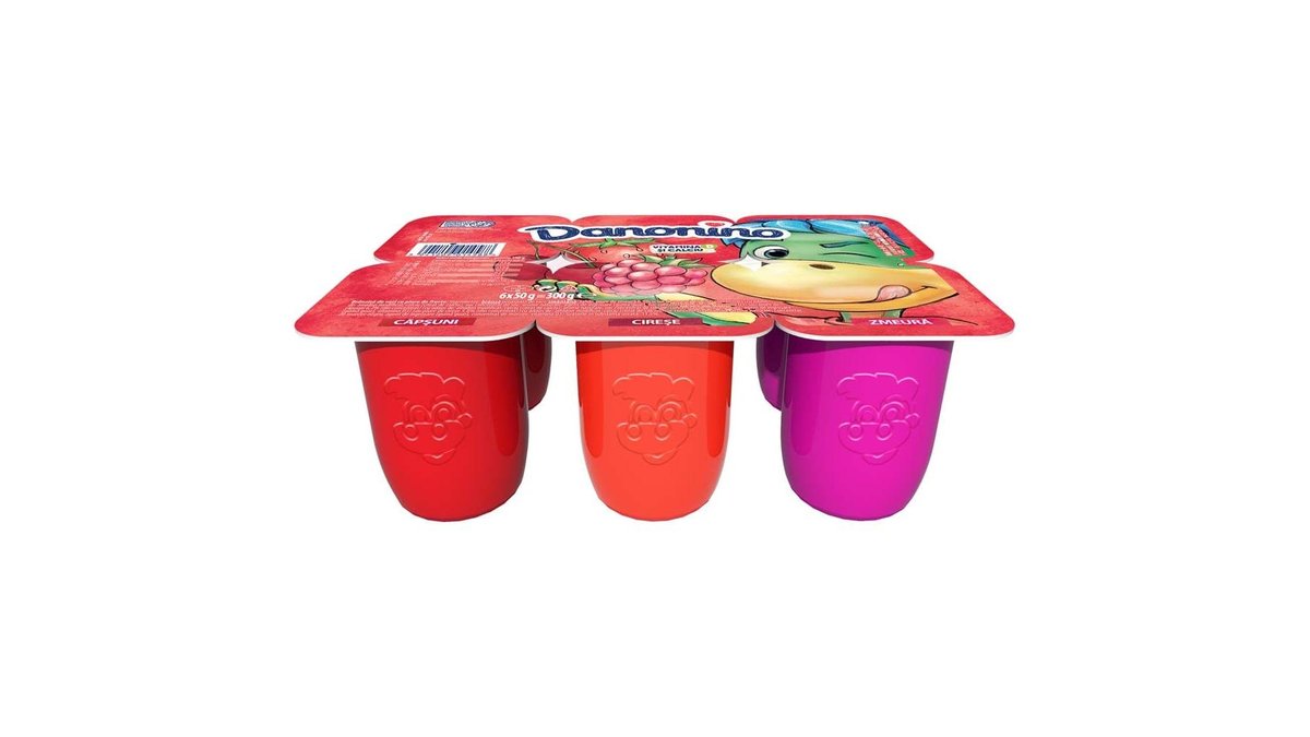 Danonino Branzica de vaci pentru copii cu piure de Capsuni, Cirese si Zmeura 6x50g