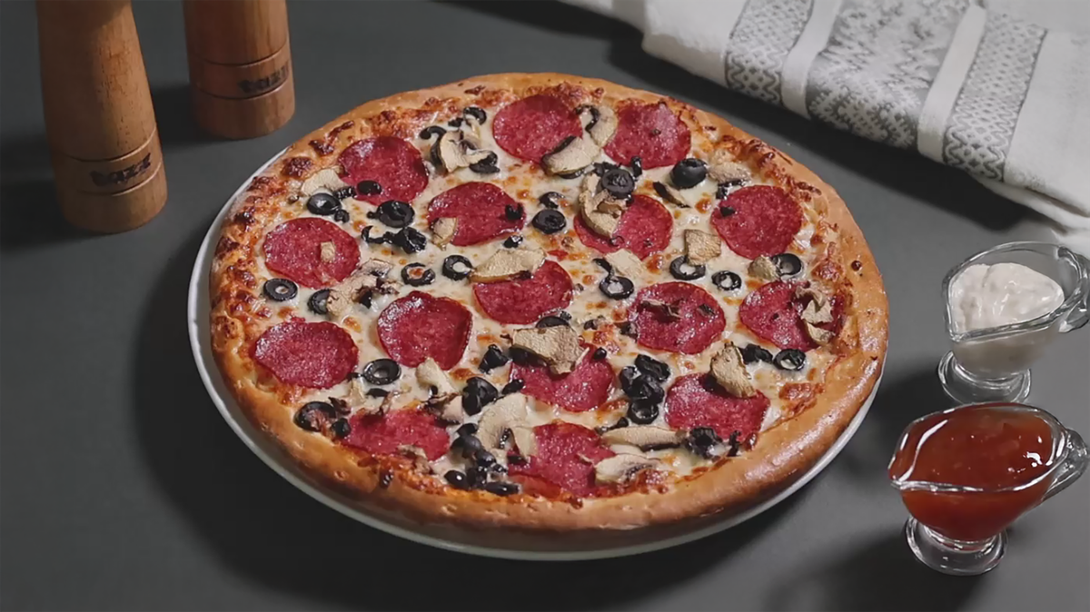 Pizza pepperoni XXL+2 bauturi(doza Bergenbier sau Cola pet 0.3L)