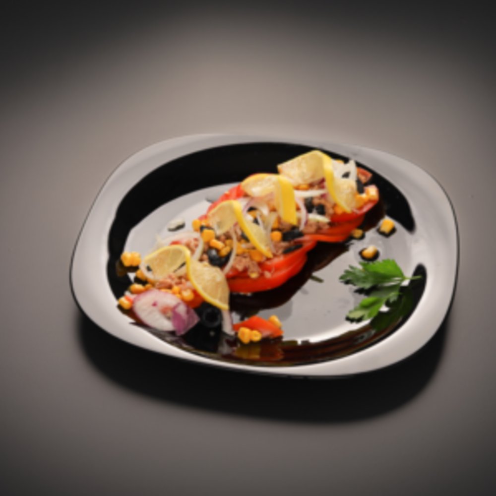 salată verde,ton, roșii, măsline, lămâie, ceapă, porumb