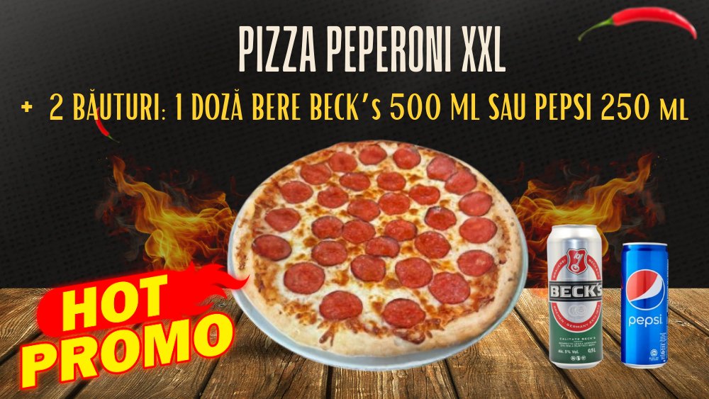 Pizza pepperoni XXL+2 bauturi(doza Becks sau Pepsi)