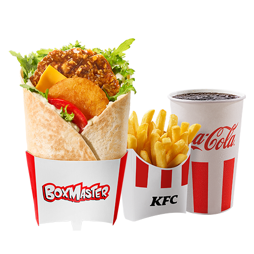 BoxMaster Sosificat Picant (285g), 1 portie mare de cartofi (120g), 1 racoritoare mare (0.5L)