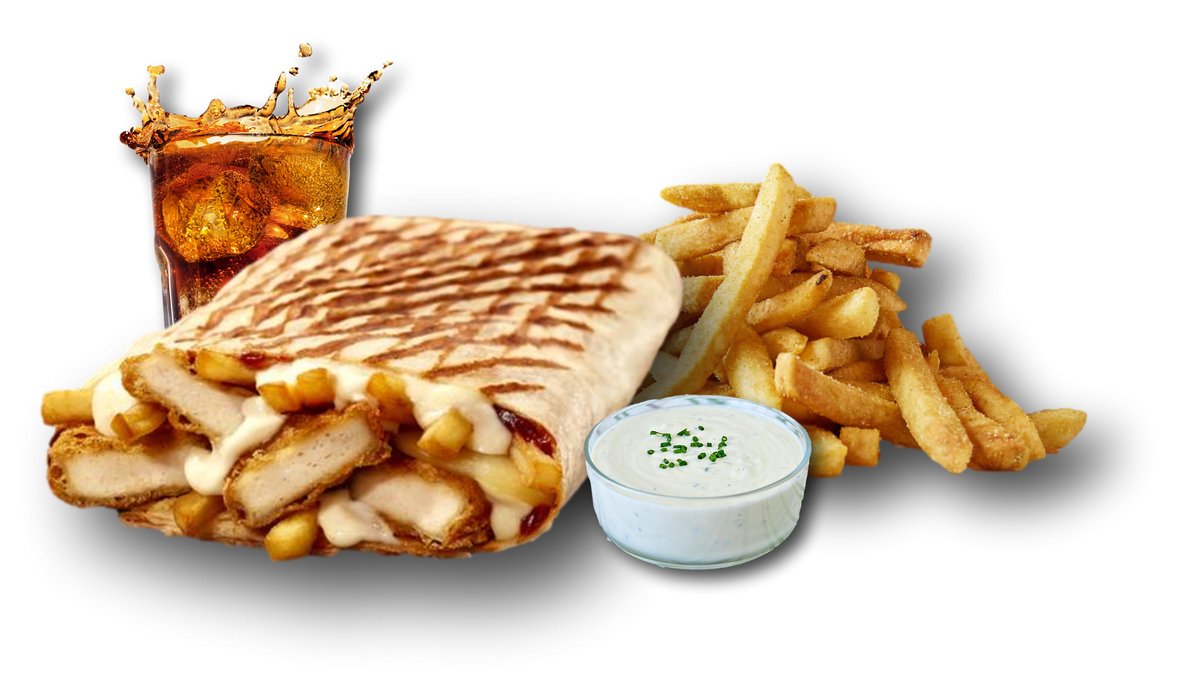 Taco all-natural cu mozzarella, nuggets 100% de curcan, sosuri la alegere, cartofi proaspeti prajiti la interior plus racoritoare la alegere , un sos ranch si o portie mare de cartofi proaspeti taiati manual, toate incluse in pret.