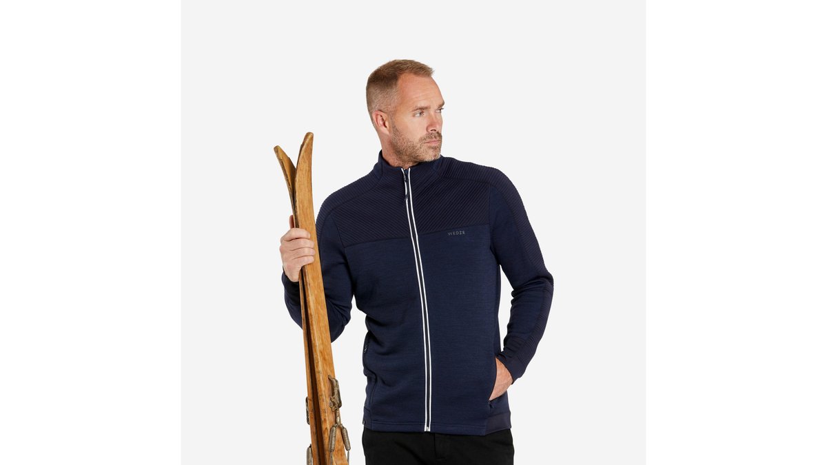 Pulover schi călduros și respirant din lână merinos 500WARM Albastru-Alb Bărbați
