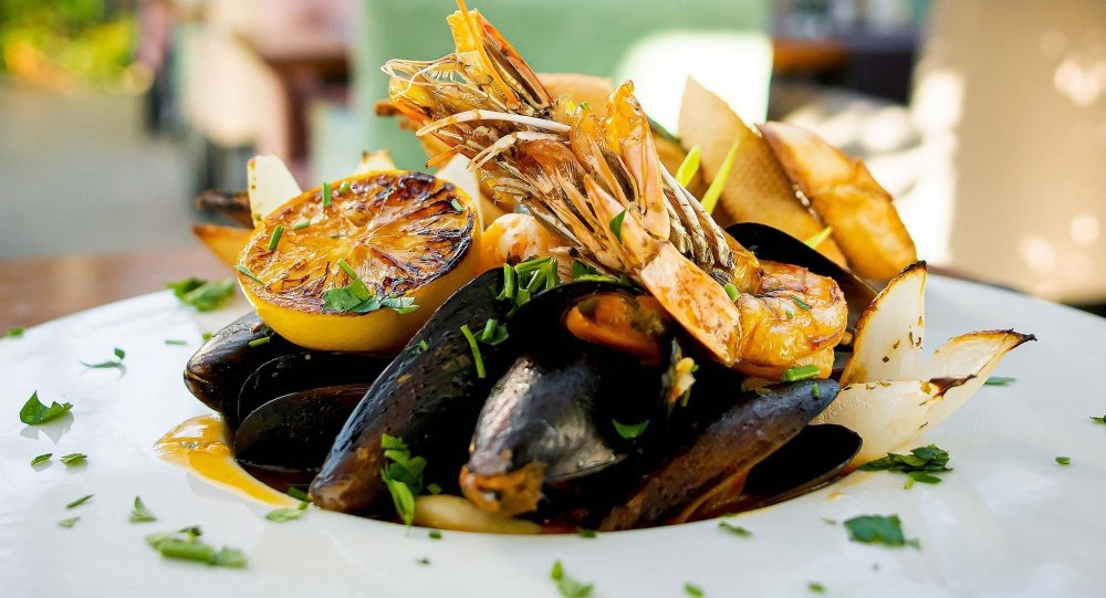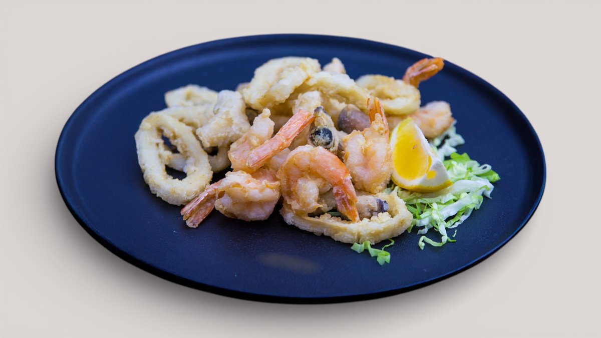 Inele de calamari, black tiger, langustine, midii, creveți, tentacule de caracatiță, ardei iute, roșii cherry, sos de roșii 1000 g