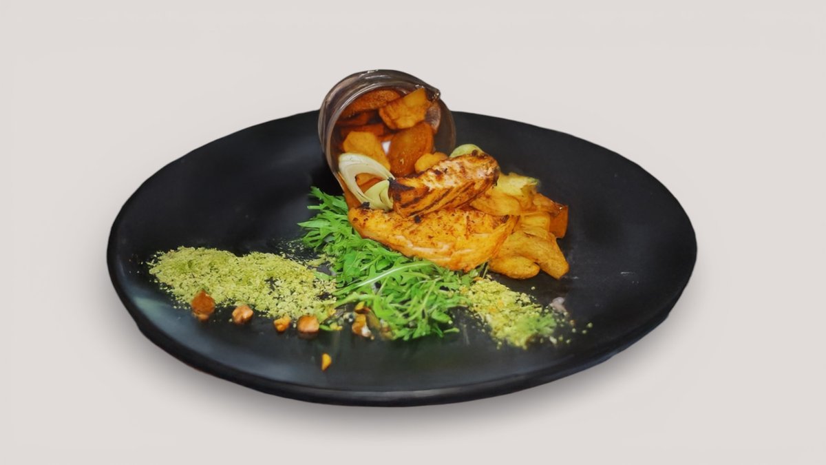 Piept de pui pe jar cu rondele de cartofi cu ierburi aromatice