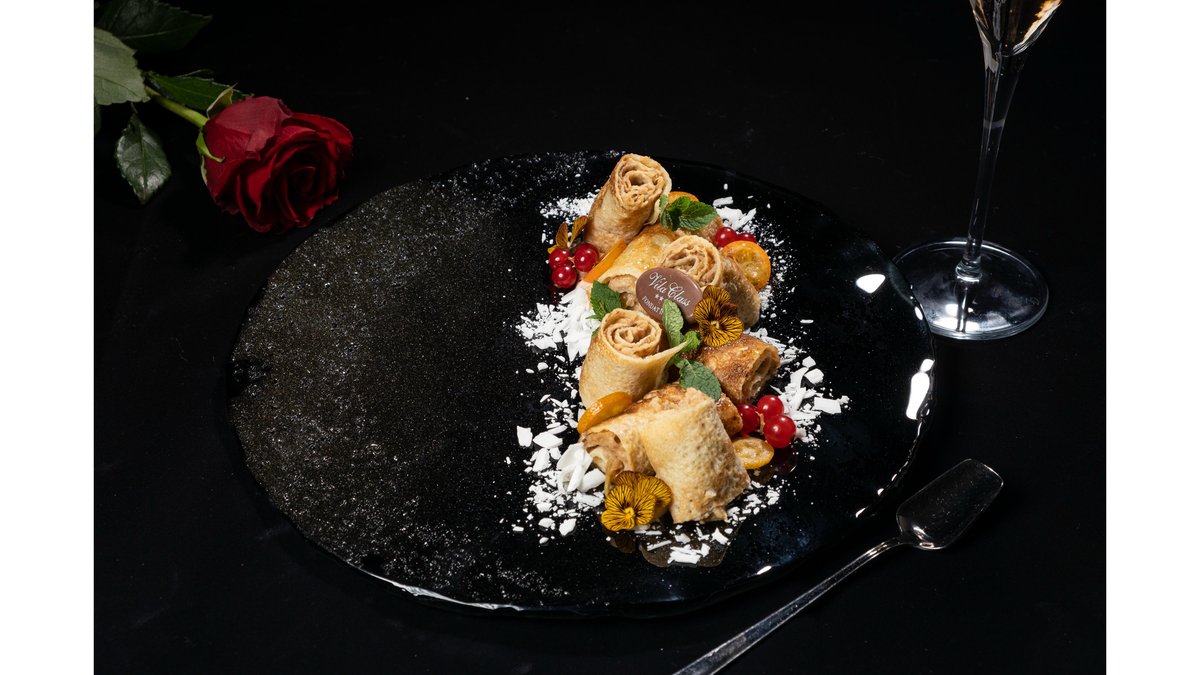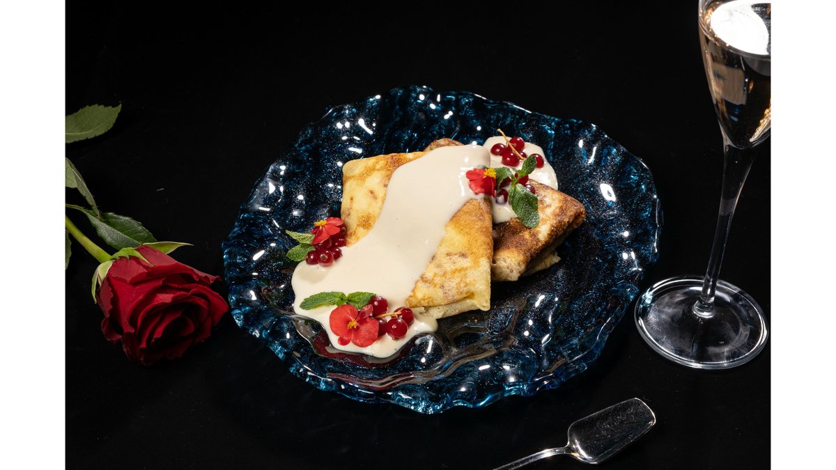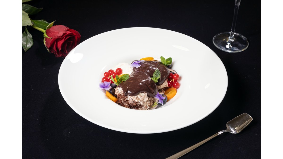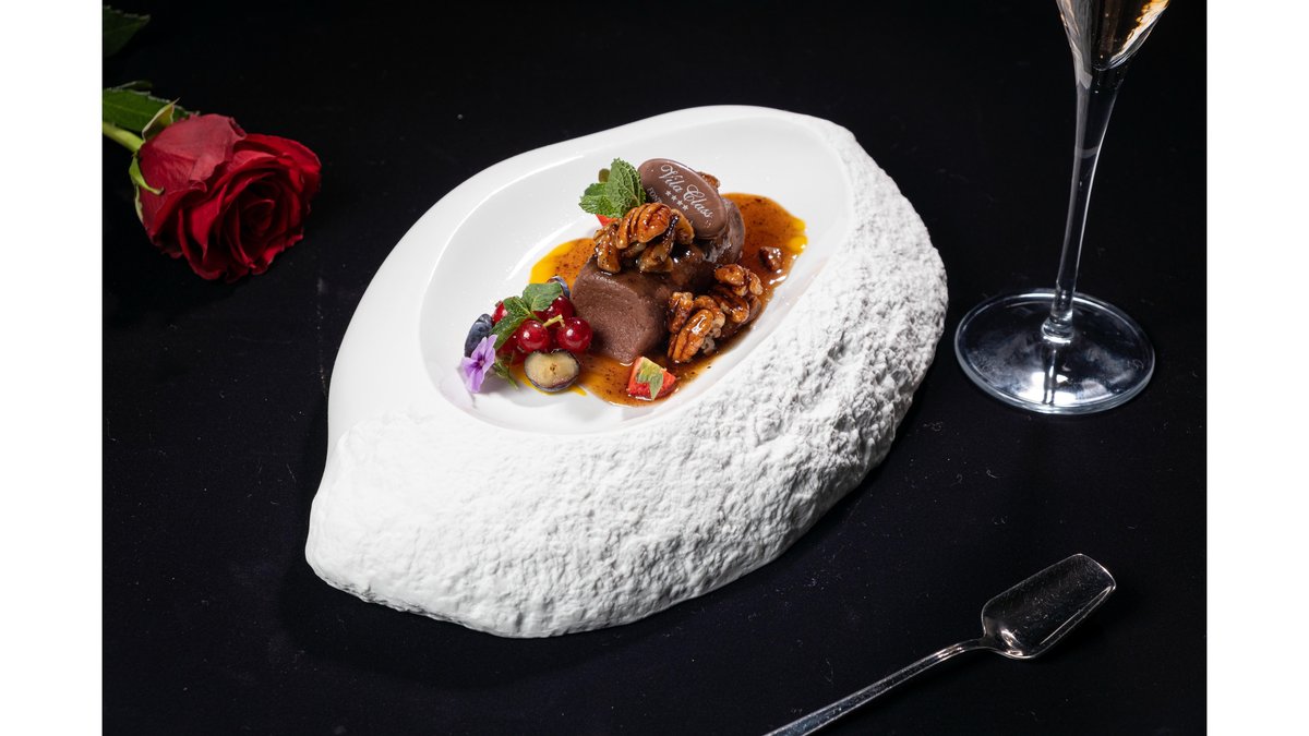 Pișcot nuci sos de vanilie, sirop de portocale și lămâic, sos de ciocolată negru - 250g