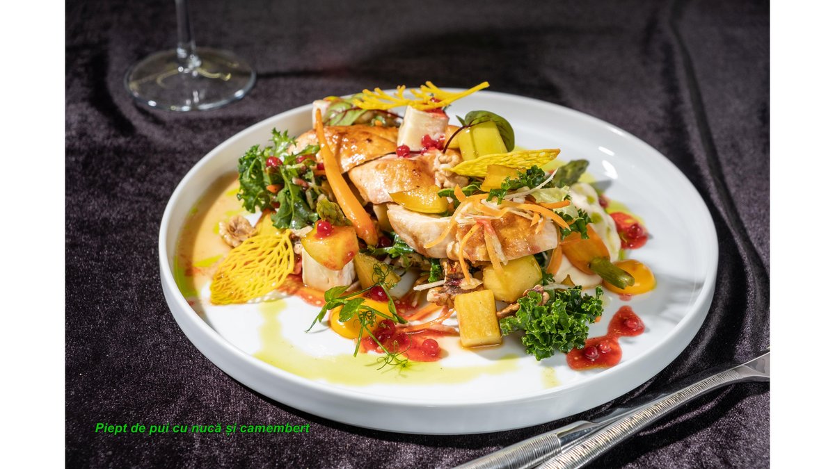 Salata mixta,piept de pui,bacon,feta,sos alb,rosii,crutoane,castraveti, 400 gr