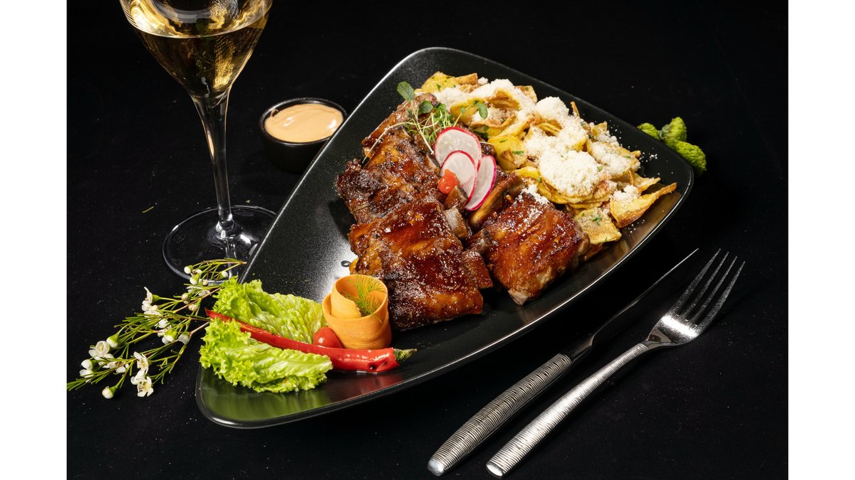 Costițe BBQ, cartofi, parmezan, usturoi - 600 g