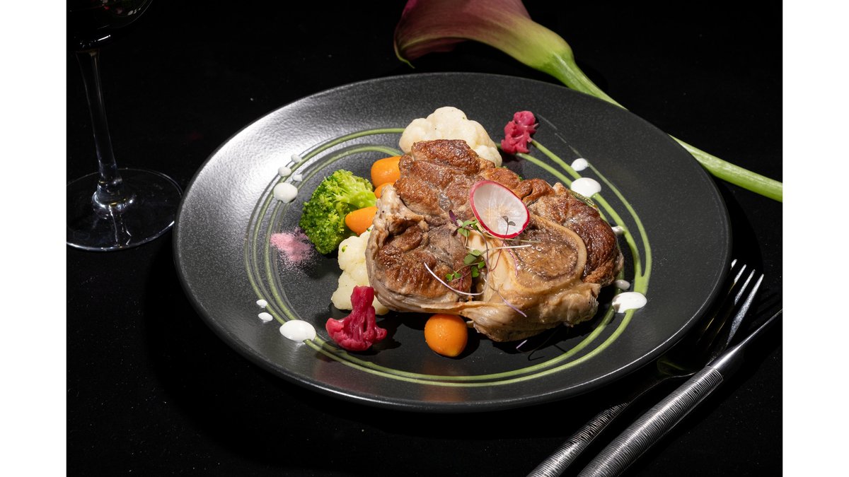 Mix carne de vită și porc, cartofi, legume, parmezan, sos soía, sos BBQ usturoi