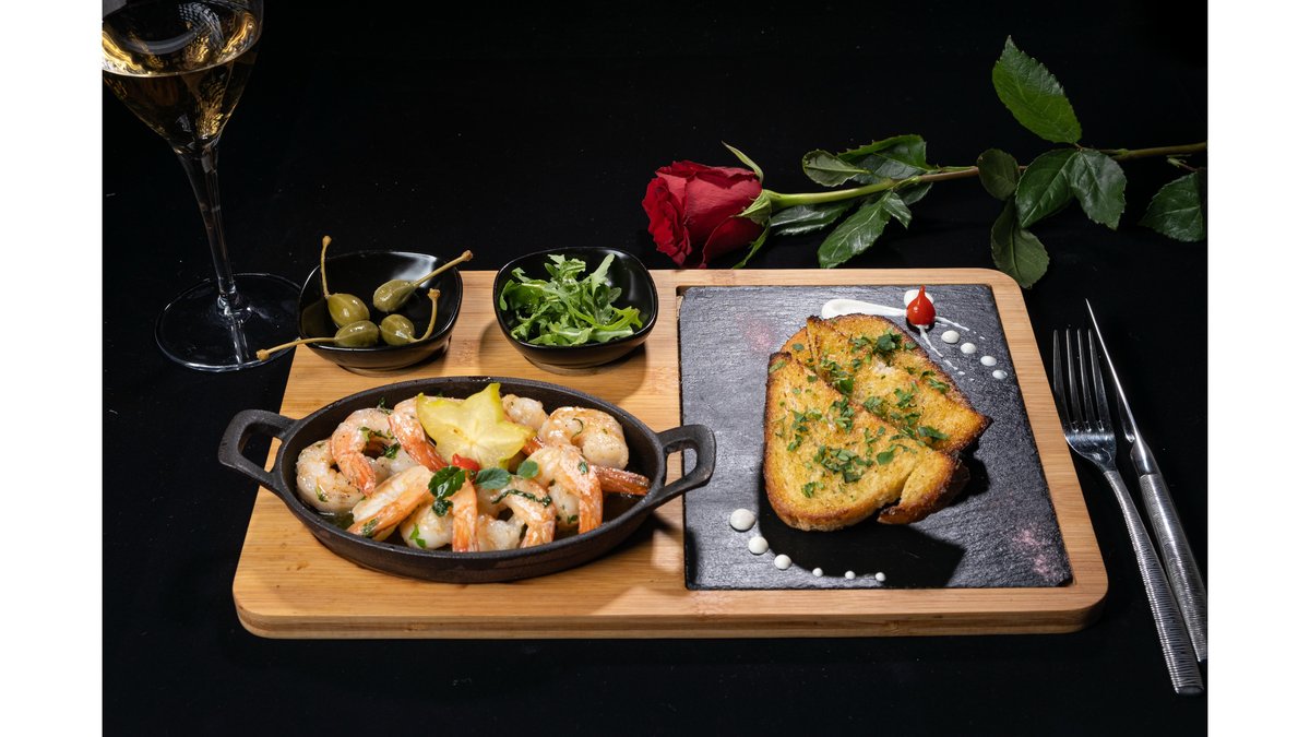 Creveți usturoi, pâine prăjită, roșii, pătrunjel, busuioc, unt - 400 g