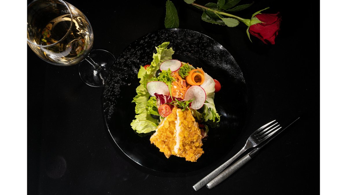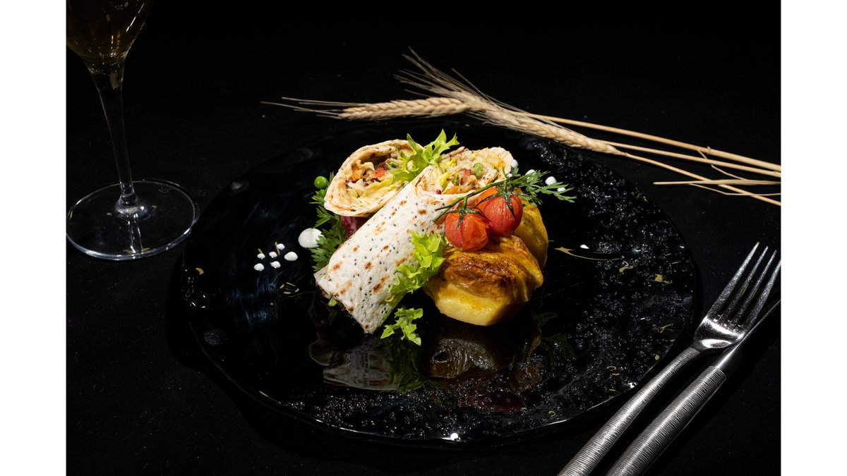Lipie, salată mixtă, cartofi la cuptor, legume prăjite, sos o mie de insule - 300g