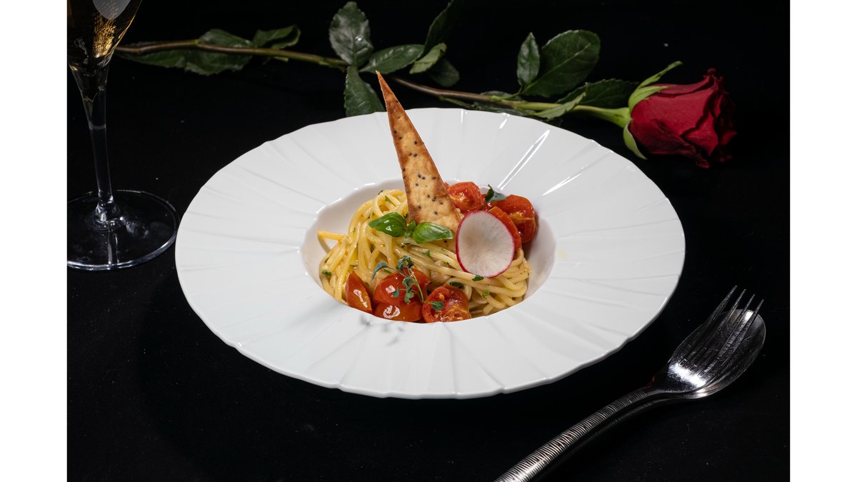 Spaghete, roșii, pătrunjel, busuioc, usturoi - 400 g