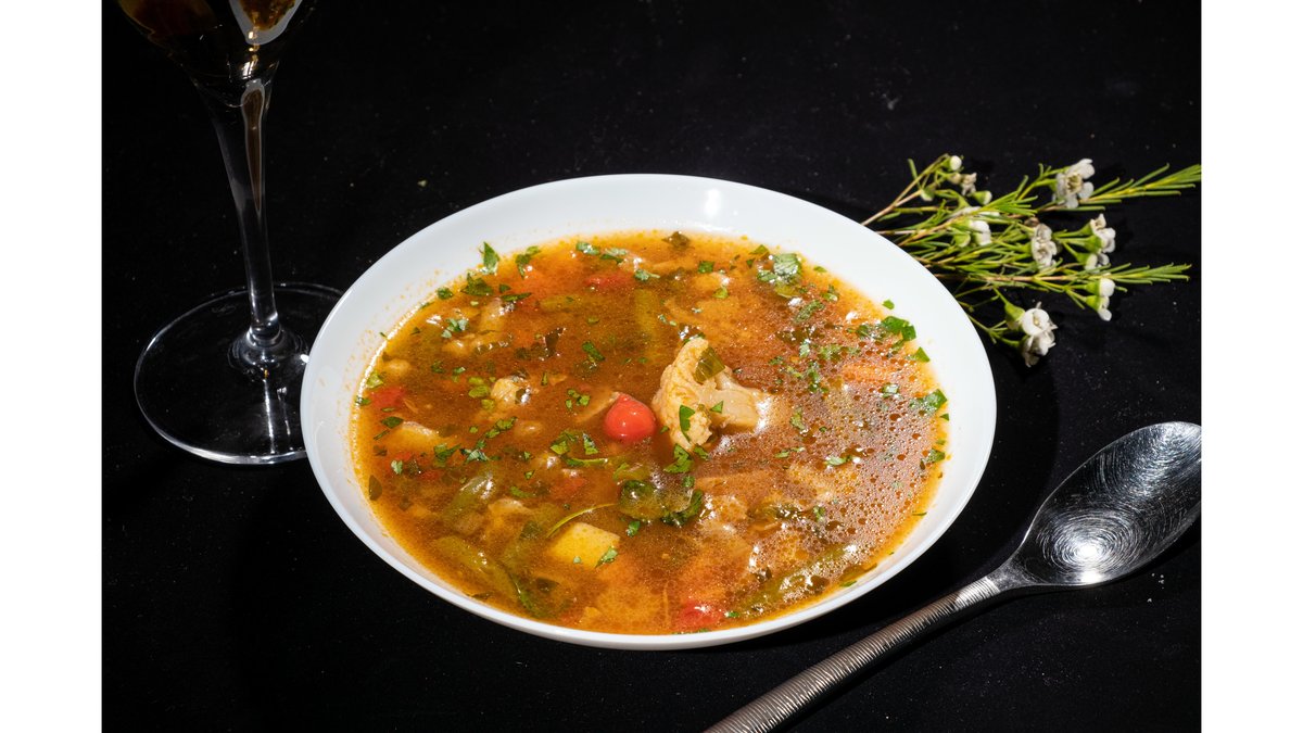 Fasole, tarhon, ceapă, ardei gras, sos roșu - 400 g