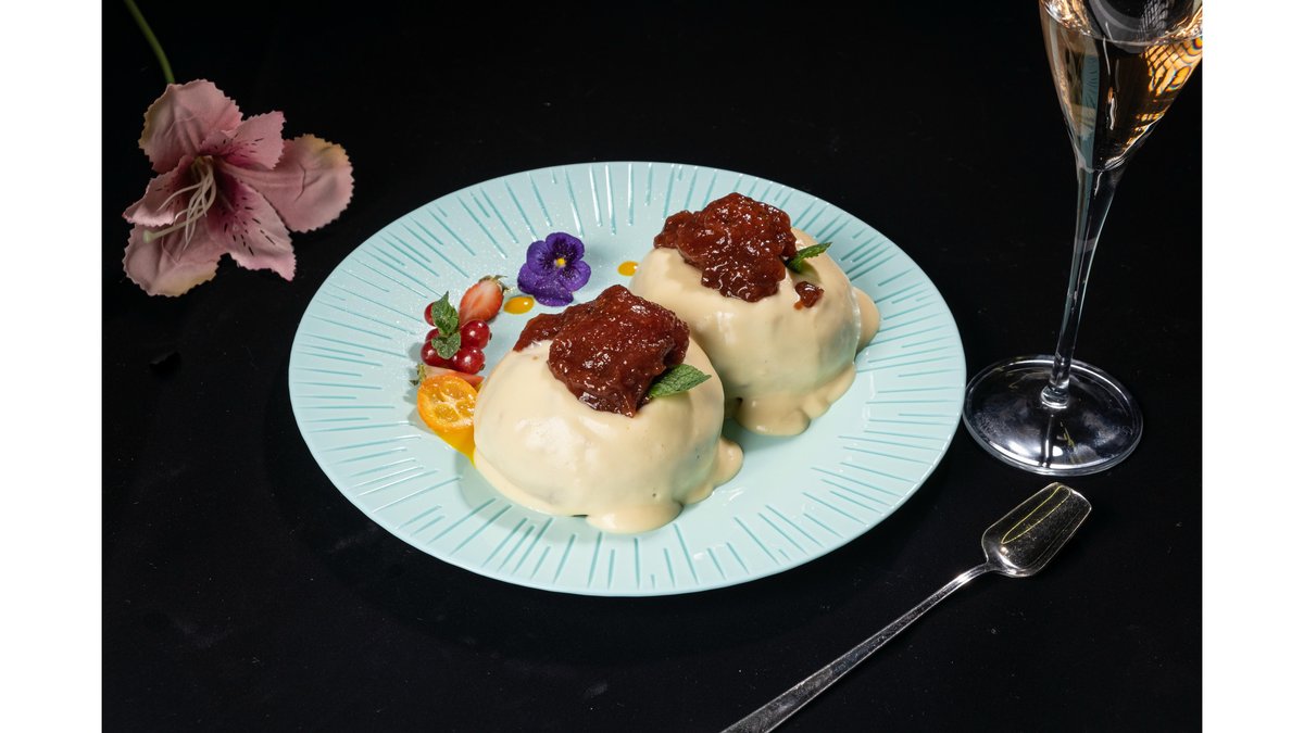 Brânză de vacă, sos de vanilie, gem de căpșuni - 350 g