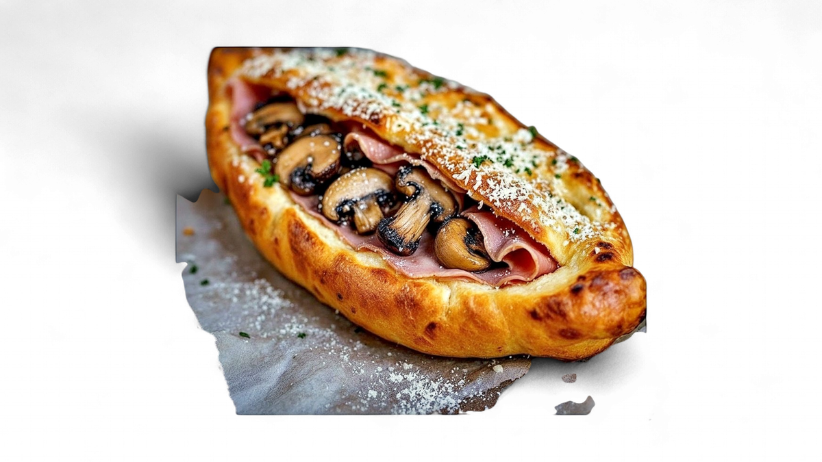 Blat pízza, șuncă, mozzarella, funghi, sos de roșii, oregano