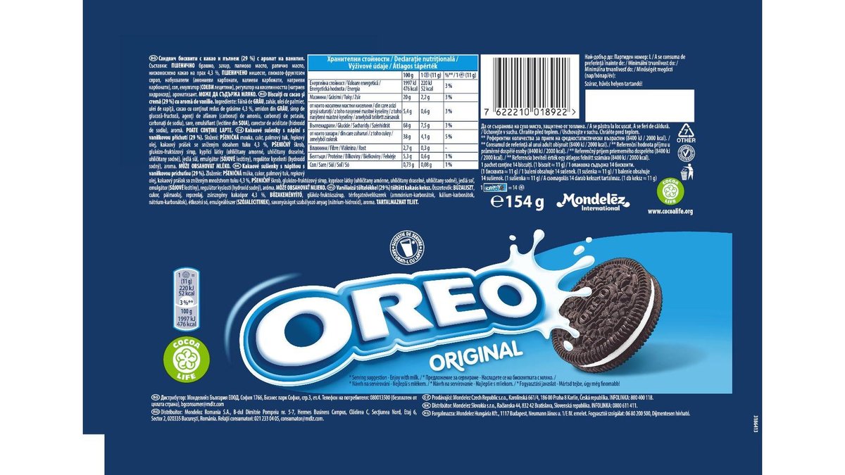 Oreo original, Biscuiti cu cacao si crema de vanilie 154g