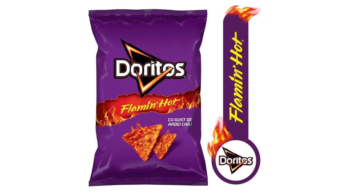Doritos, tortilla chips, Flamin’ Hot cu gust de ardei chili, 75g