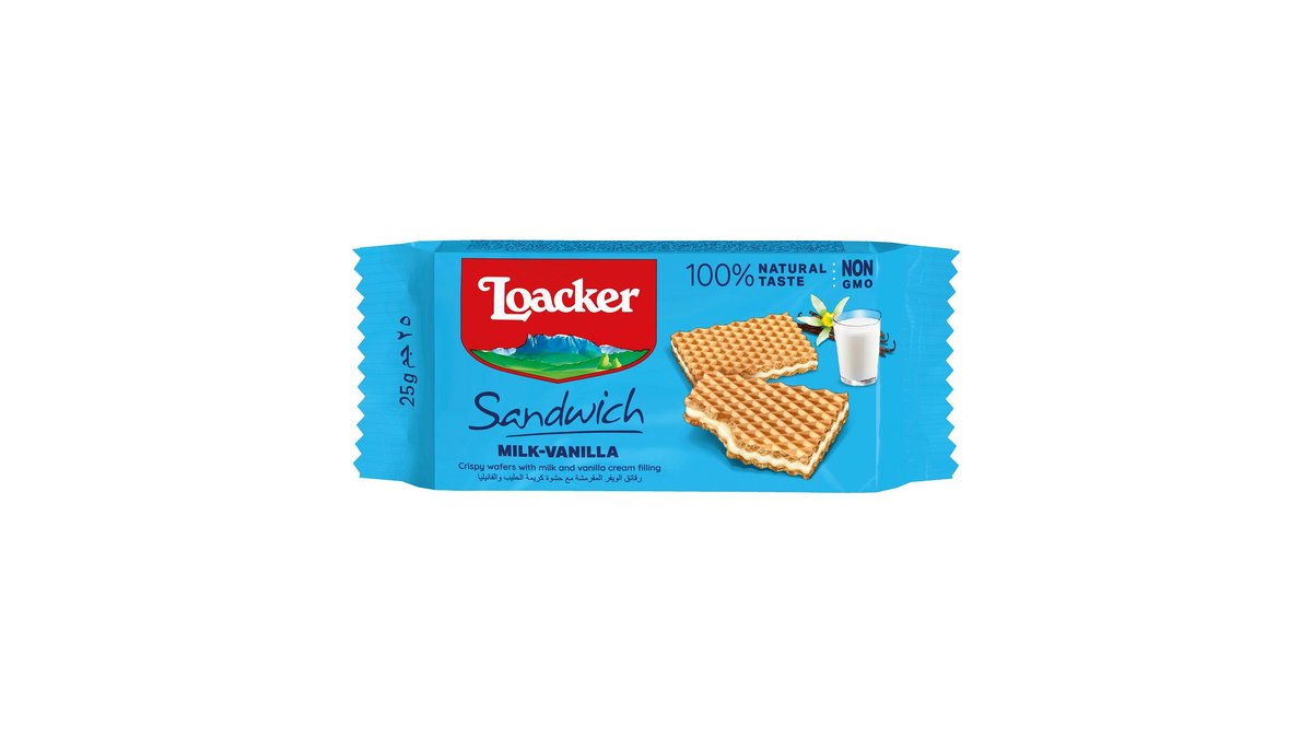 Napolitane crocante umplute cu crema de lapte si vanilie Loacker 25 g