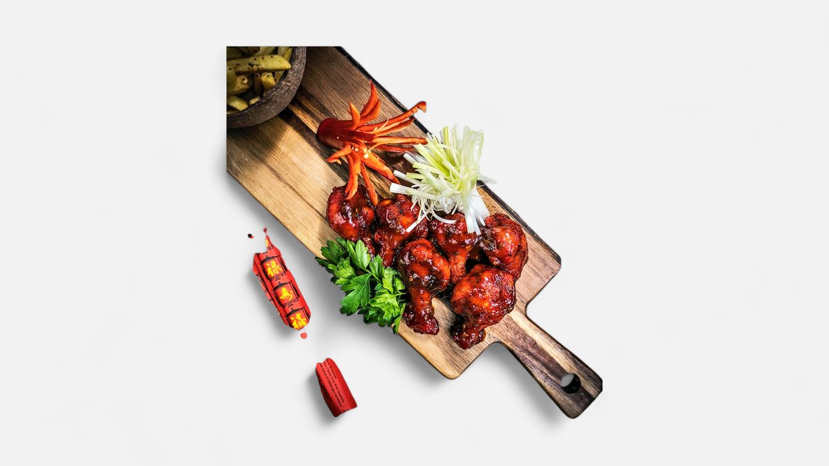 Aripioare de pui, orez mediteranean, legume la grătar, lipie turcească, salată de ceapă 550 gr