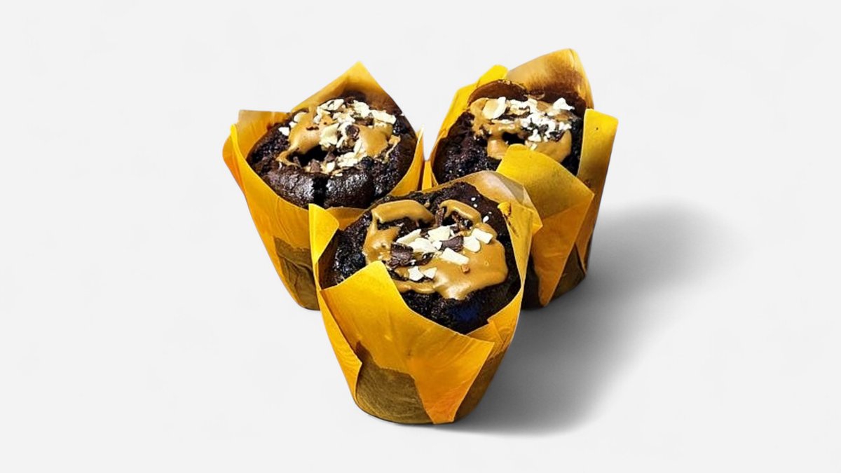 Muffin cu ciocolată și caramel Un muffin moale și pufos, cu gust intens de ciocolată și note dulci de caramel, perfect pentru a satisface pofta de dulce a clienților.