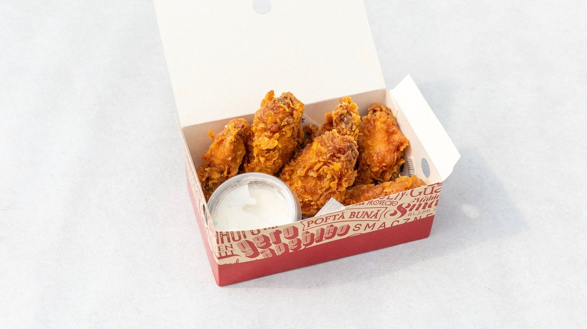 Făină, ouă, piept de pui, ulei palmier, fulgi de porumb, pâine 130 g