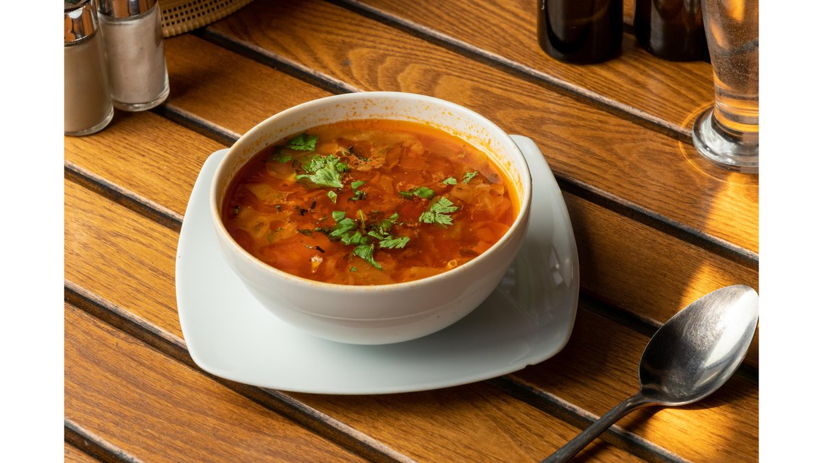 Pulpă vită, ardei gras, cartofi, ceapă, fasole verde, morcovi, țelină, varză, mazăre, roșii. 300/70g