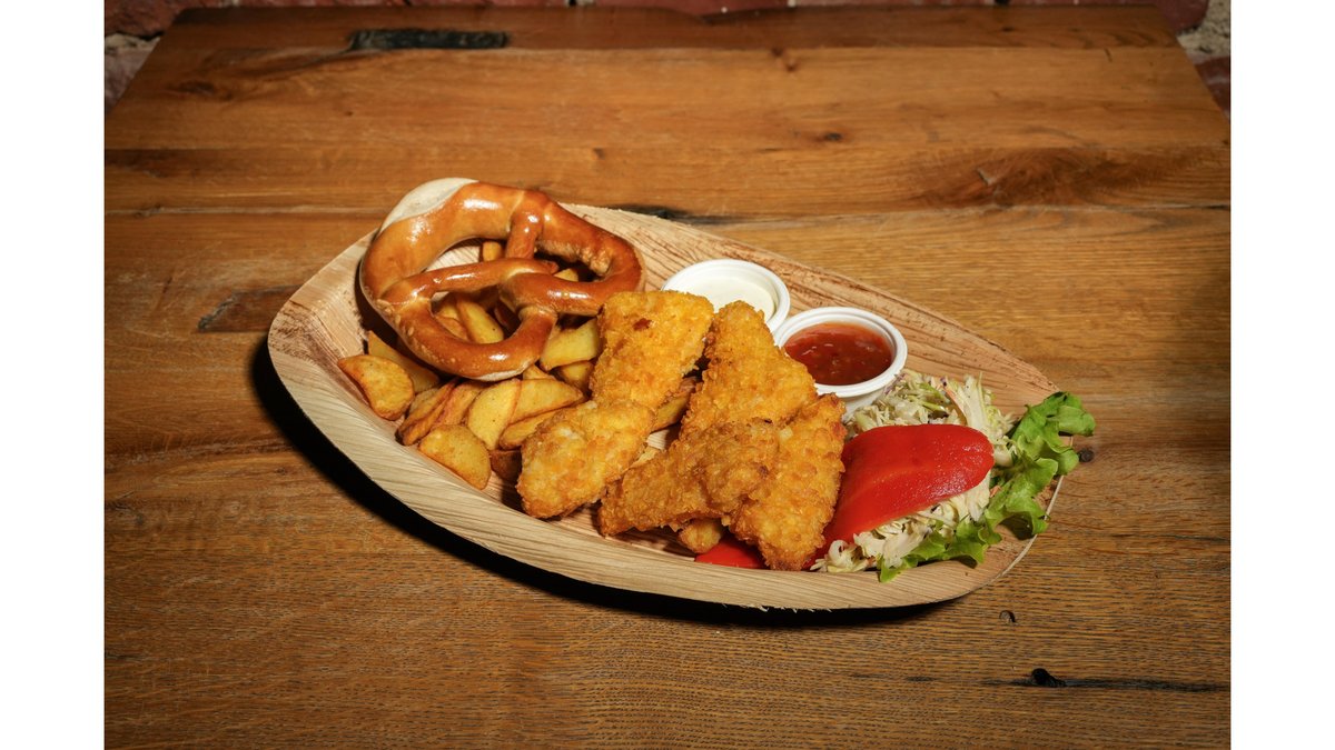 with curry gewurz, coleslaw, wedges, 2 dips, pretzel cu sos curry, salată coleslaw, wedges, 2 sosuri, pretzel 855g