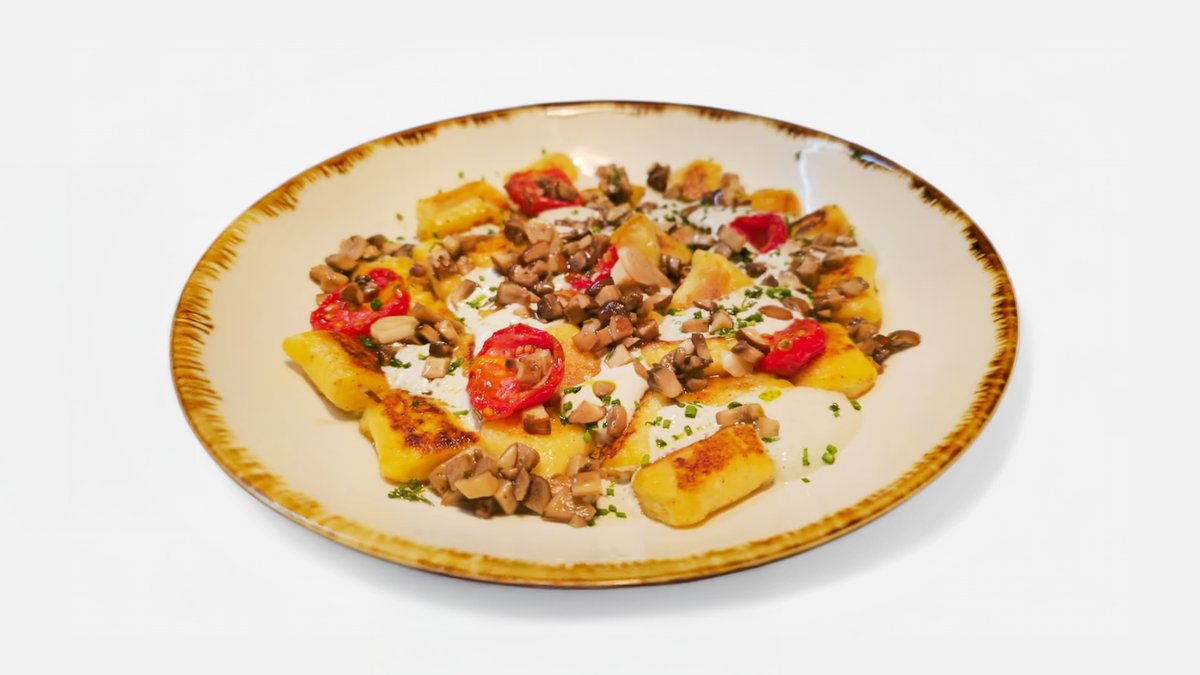 Gnocchi de casa cu ciuperci, spuma de gorgonzola cu iz de trufe si rosii coapte 400gr